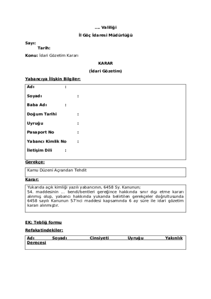 DİKKAT: Uygulamada 6 aylık idari gözetim kararlarına rastlanmakla birlikte idari gözetiminin devamında zaruret olup olmadığının her ay resen değerlendirilmesi gerekmektedir. İdari gözetim kararına karşı Sulh Ceza Hakimine başvurulabilir. İdari gözetim kararına karşı itiraz için bir süre öngörülmemiş olup idari gözetim altına alınan kişi veya yasal temsilcisi ya da avukatı, idari gözetim şartlarının ortadan kalktığı veya değiştiği iddiasıyla yeniden sulh ceza hâkimine başvurabilir.