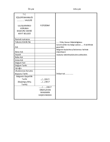 Uluslararası Koruma Başvuru Sahibi Kimlik Belgesi (Eski Tip)